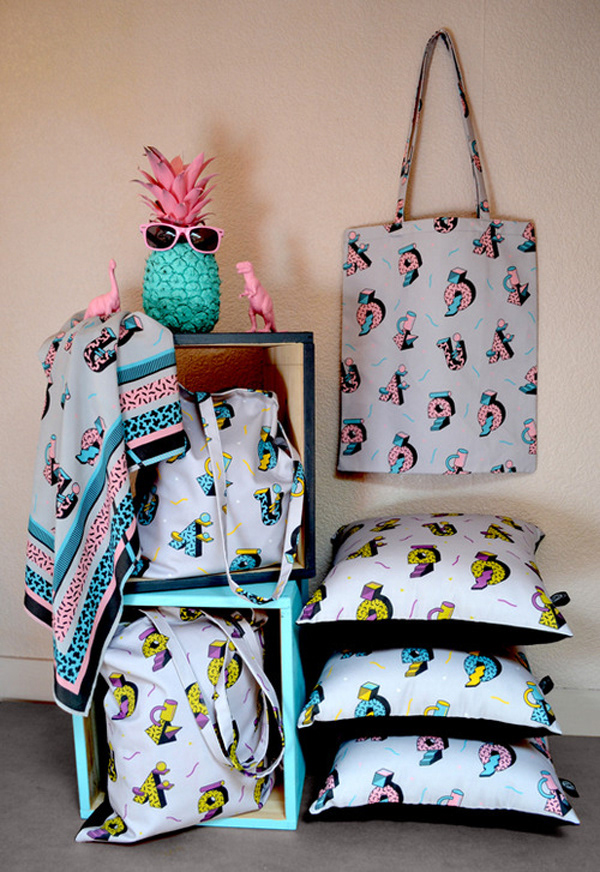 Mainly inspired by 80's and 90's pattern designs and Memphis Design, the "Santo Domingo" and "Milano" fabrics were produced for furniture, bags, silk scarves, cushions and other accessories.
