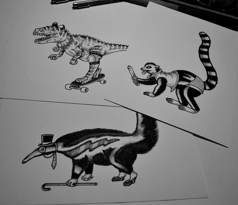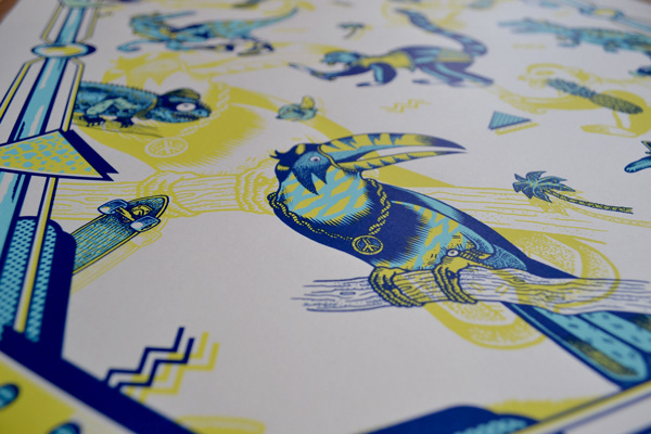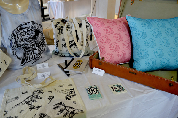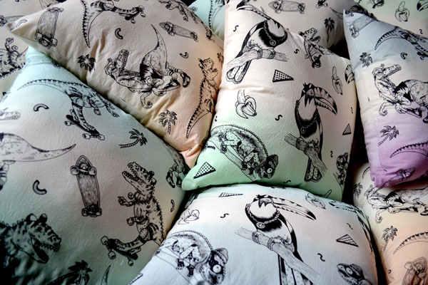 This collection was screenprinted on paper, tote-bags, cushions, wallpapers, stickers and shirts, all in small quantities.
