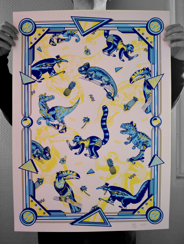 We created funky patterns to build this collection, with inspiration from exotic fruits, animals, jungle elements and skateboarding.