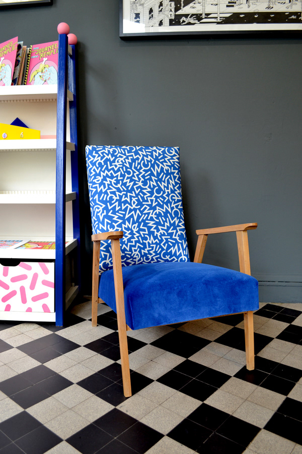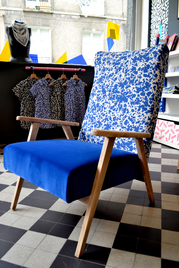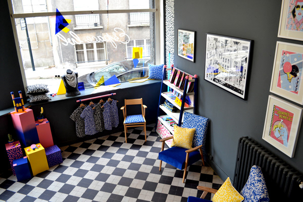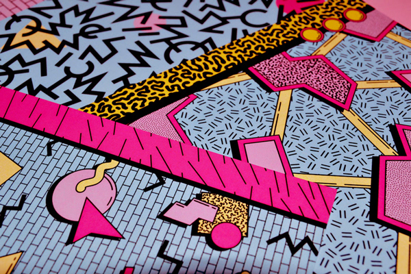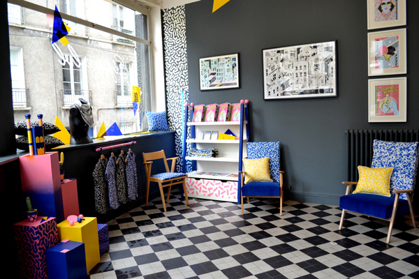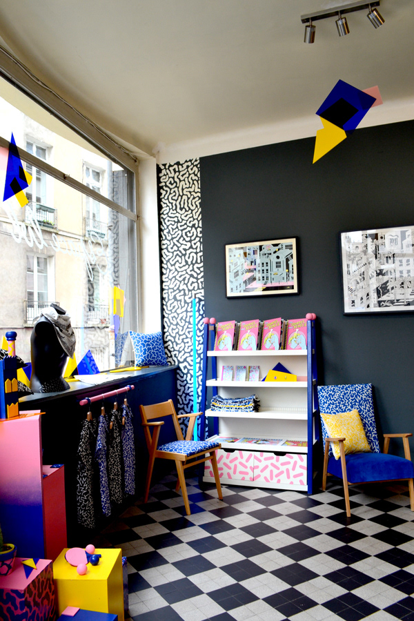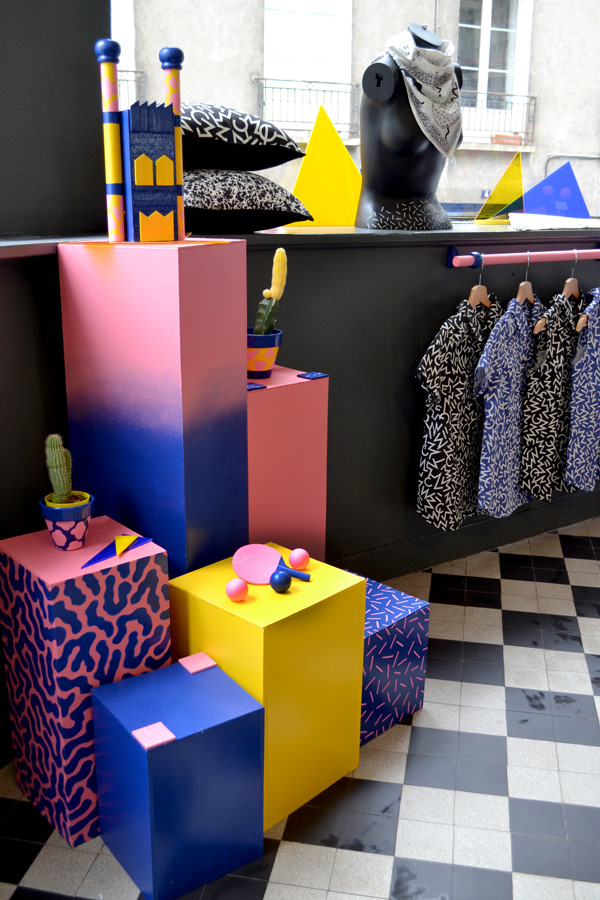 We designed and produced textile, chairs, pin's, prints, books, scarves, screenprints, shirts, accessories and painting, for the Expop'Up exhibition that focused on patterns and 80's graphic design.