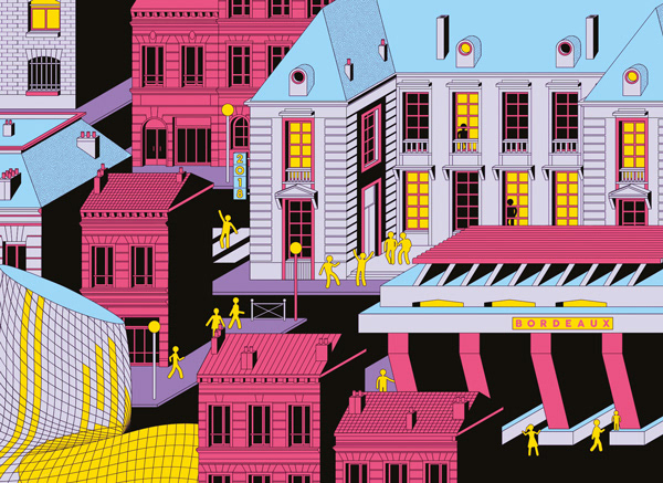 I was asked to draw the 13 Bordeaux museums that took part in this cultural event. Now go play the game, collect the postal cards and try to recognize the buildings hidden in the classical Bordeaux architecture !