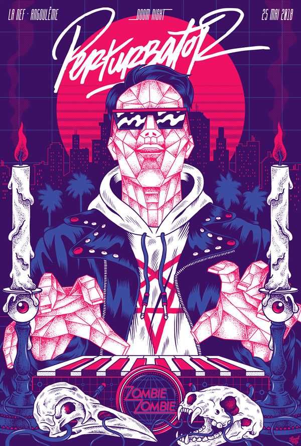 PERTURBATOR + ZOMBIE ZOMBIE / Screenprinted Poster - La Nef / Angoulème