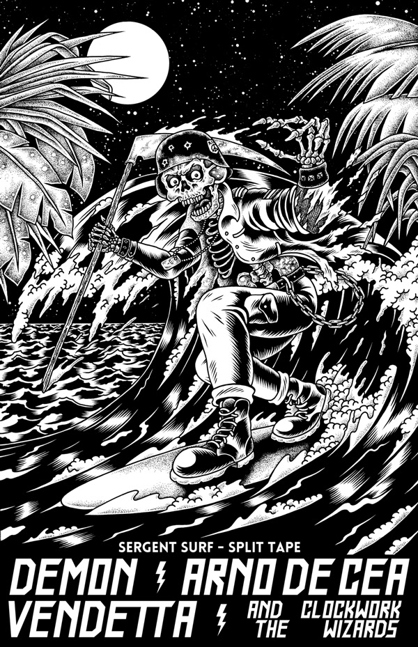 DEMON VENDETTA / ARNO DE CEA / Sergent Surf 10" Split + K7 Tape - MetroBeach Records